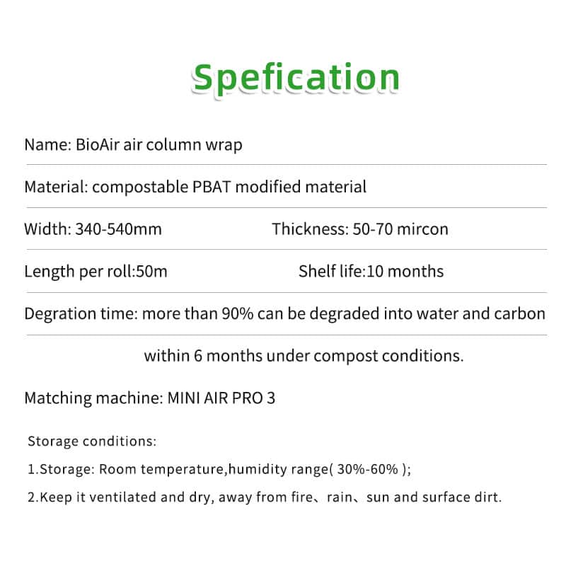 One of the key advantages of the BioAir Air Column Wrap is its superior air locking and load-bearing capacity compared to traditional degradable air columns. This means that businesses can rely on this packaging solution to provide maximum protection for their products, even during long-distance shipping or rough handling. Whether it’s fragile electronics, delicate glassware, or heavy industrial equipment, the BioAir Air Column Wrap is up to the task of keeping your products safe and secure.