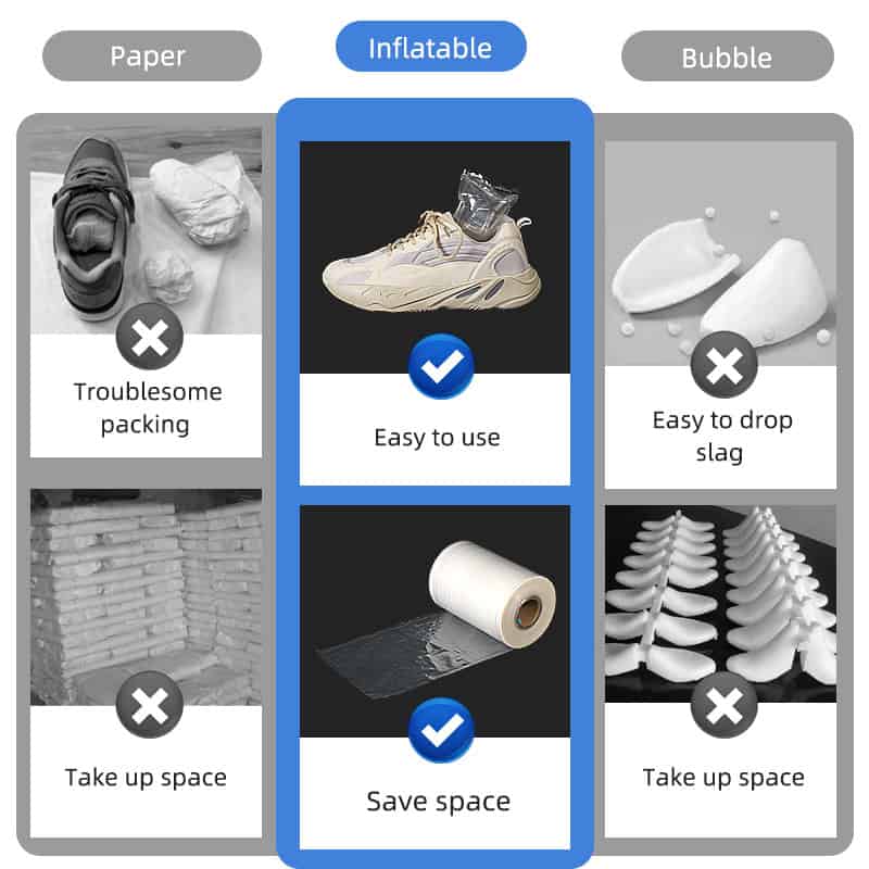 Unlike traditional shoe trees made from kraft paper or rigid plastic, MINI AIR Inflatable Shoe Trees offer a unique combination of benefits that set them apart. Their lightweight design not only makes them easy to handle but also significantly reduces courier costs when shipping. Say goodbye to bulky shoe supports that take up unnecessary space in your closet or luggage!